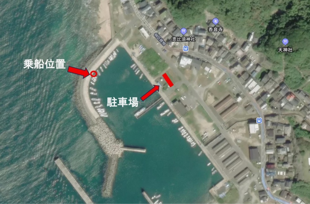 駐車場は、荷揚場横、弘ショップの近くの給油所裏のヒロシ丸と書かれた駐車場に奥から縦に駐車をお願いします。(4台停められます)