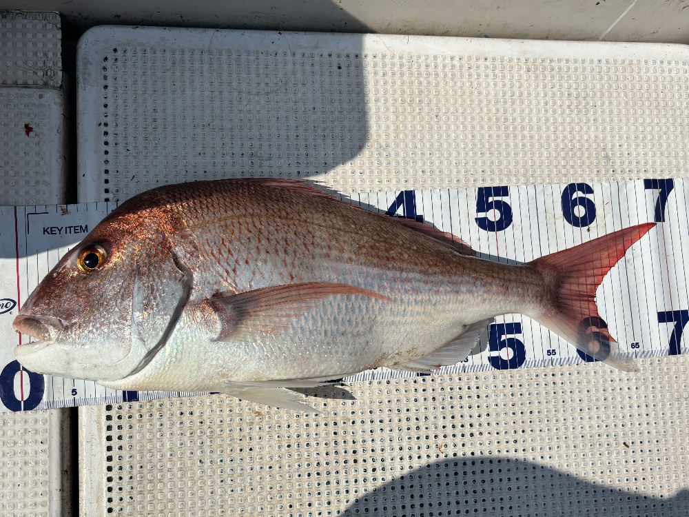 ルールはいつもと同じで、ヒロシ丸乗船中に釣れた真鯛の長さを競って一番大きな真鯛を釣ったメンバーを優勝といたします。センチ単位で計測して同一サイズの時は綺麗なピンク色の方を採用します。